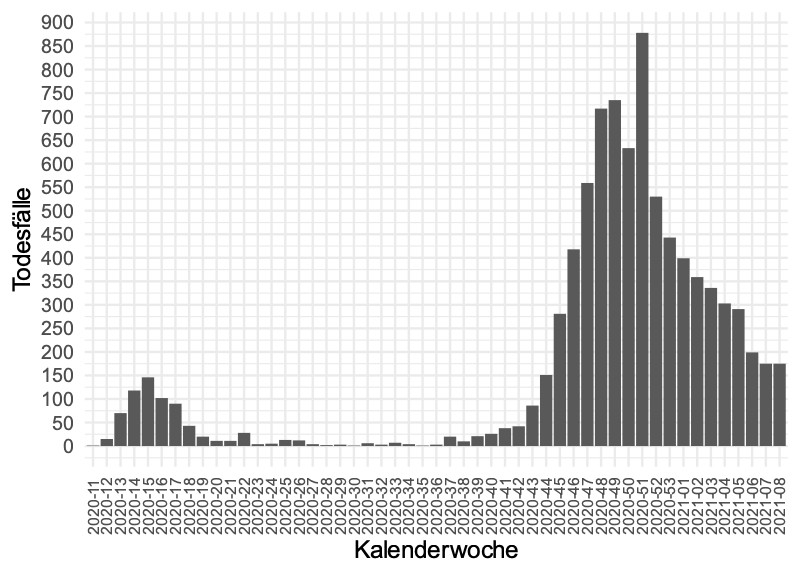 COVID-Todesfälle pro Kalenderwoche