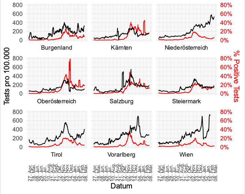 Tests und Positivrate - Österreich