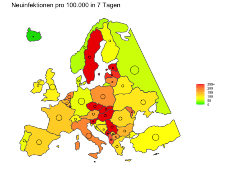 Inzidenzen (7-Tage-Mittel) in Europa
