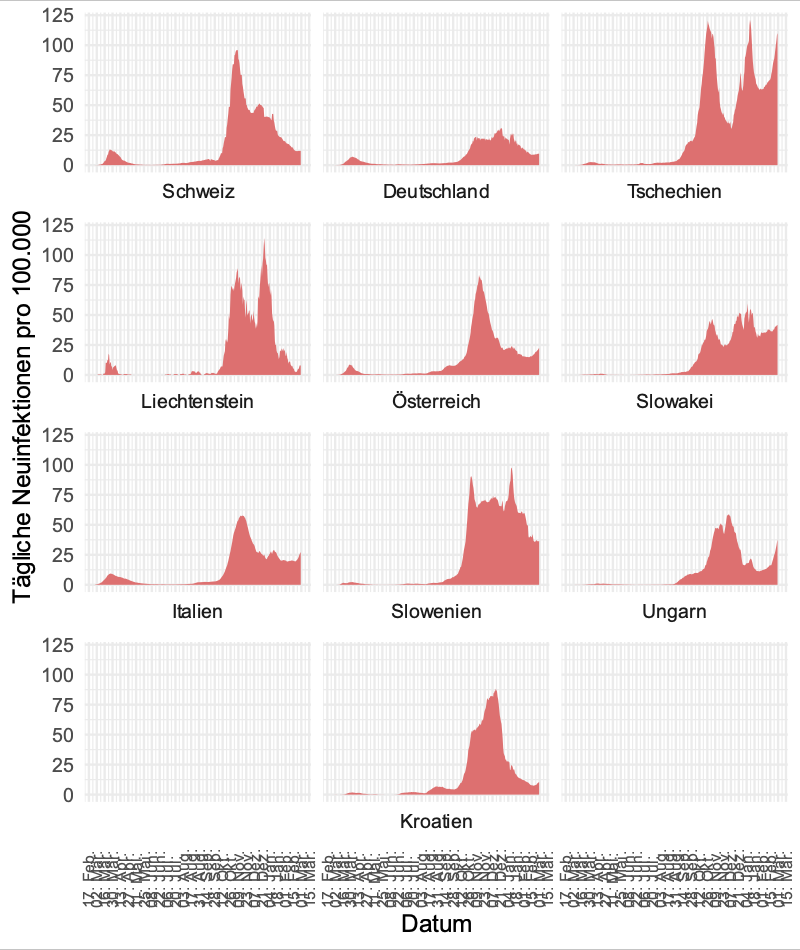 Nachbarländer - Inzidenzen (7-Tage-Mittel)