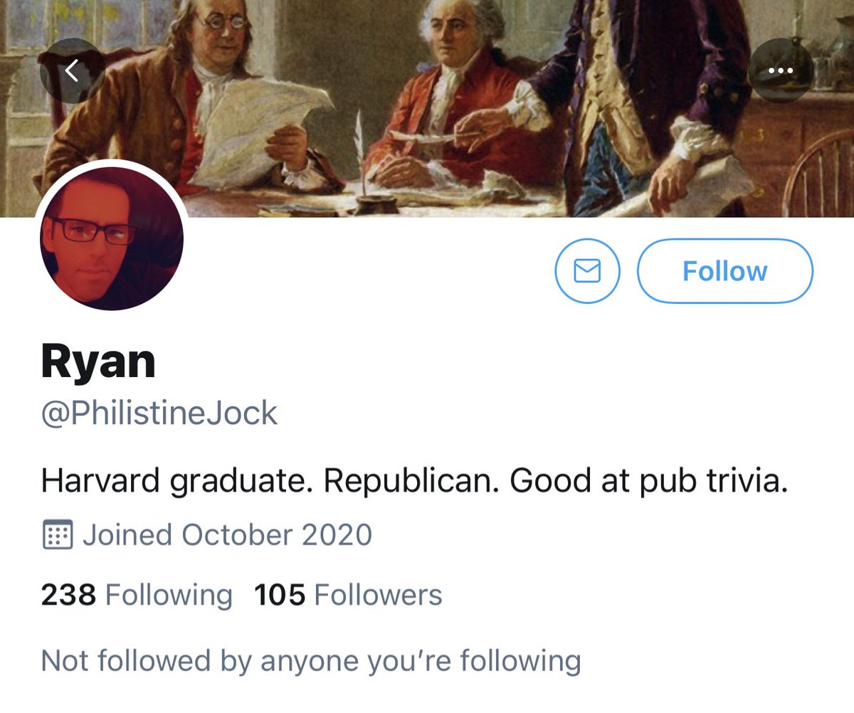 You should all know he changed his bio to state “Harvard graduate” AFTER he told me was well educated and *probably* smarter than me.