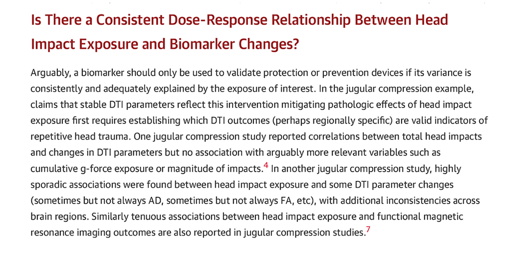 Unchanged DTI in high school football players wearing Qcollar (or any other young athlete) is potentially ABNORMAL, not protective!