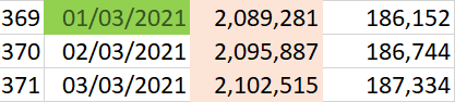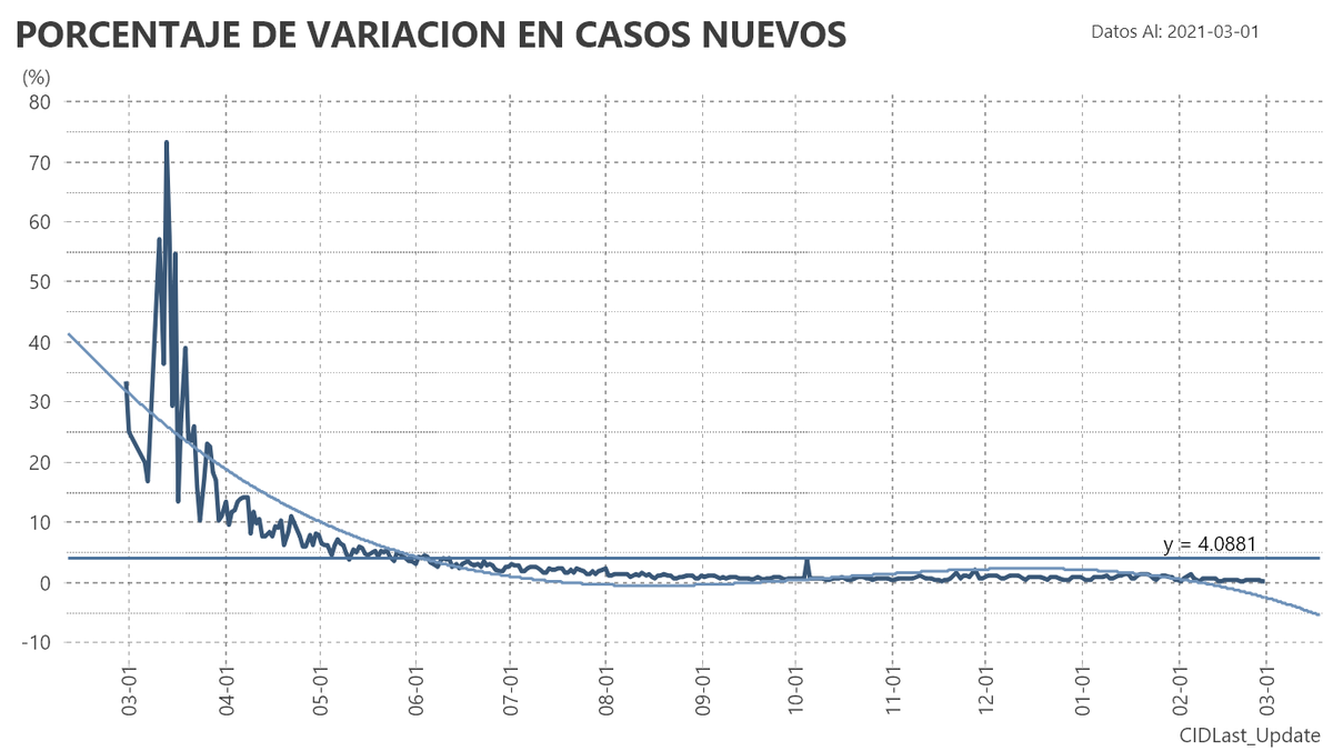 El porcentaje de aumento de casos contra el día anterior fue del 0.13%. No se llega a 2.1 millones de casos nuevos el día 28, se llegará hasta el día 3 de marzo.