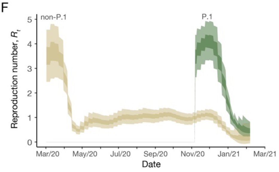 In Brazil P.1 is either 40-120% more transmissible OR evades 25-61% of immunity (& MAY be 10-80% more deadly) or combo of both. Hard to determine precise contribution, but nAb suggest *some* immune evasion (less than B.1.351?). github.com/CADDE-CENTRE/N…