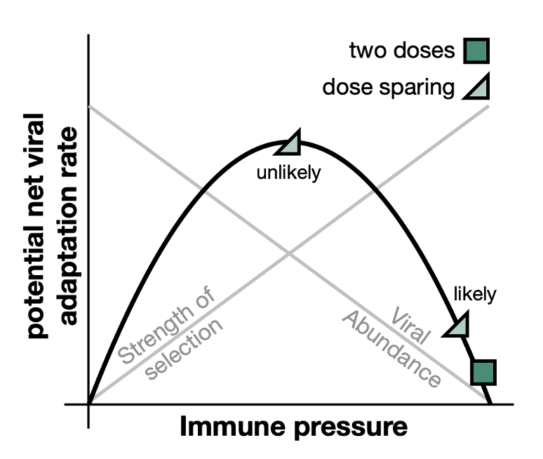 Globally, we’re facing a severe COVID-19 vaccine shortage. Dose-sparing strategies could save lives. An argument against these strategies is that they might increase vaccine escape. We think these evolutionary impacts deserve a closer look, and could actually go the other way.