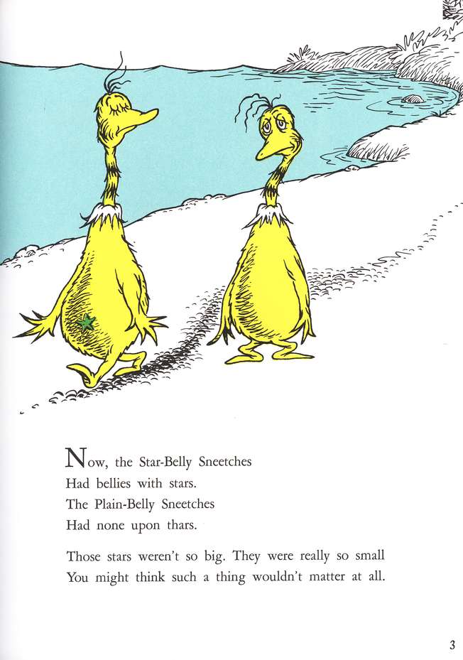 In 1952, Seuss penned a wonderful essay for the New York Book Review that critiqued racist “adult” humor. And in 1961, he wrote one of his best works: THE SNEETCHES, which Seuss himself described as a parable against anti-Semitism.