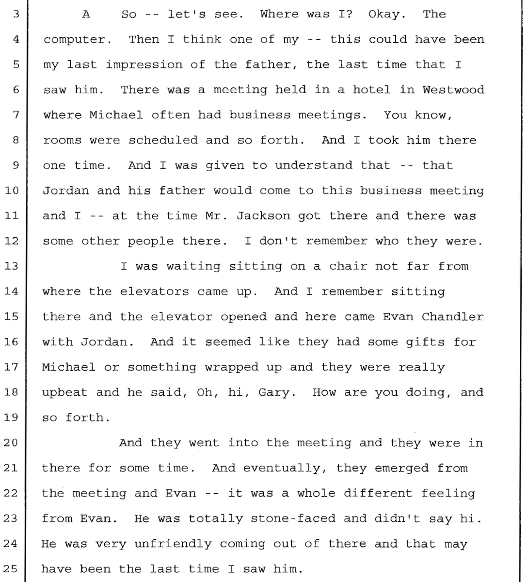 John Branca is 100% supportive of MJ and offers nothing supportive for Finaldi. Finaldi establishes Branca held business meetings w/ MJ on occasion lol.