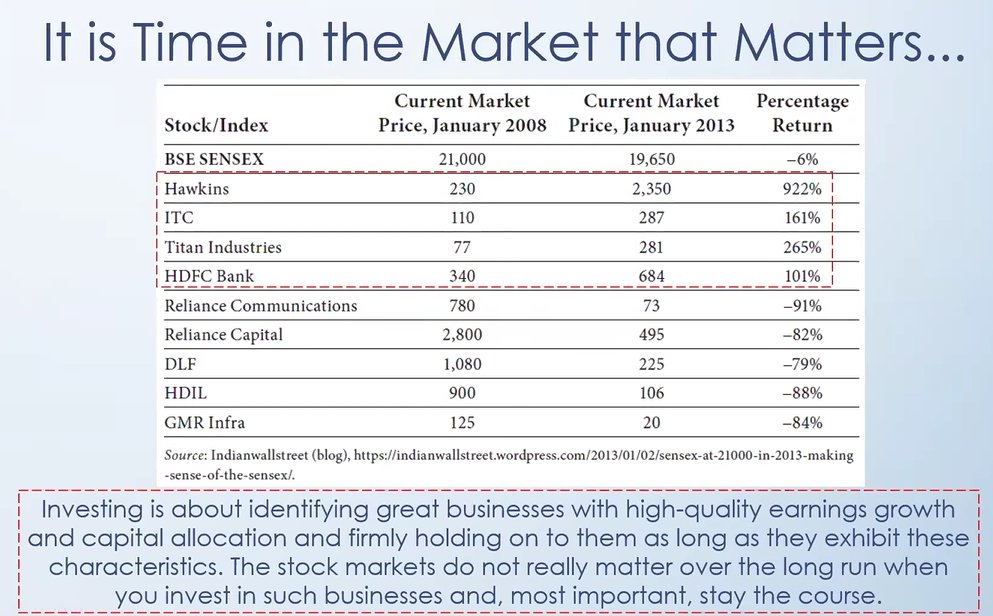 But through all volatility, if you had invested in great businesses, you would have done well across all business cycles. This is despite all the uncertainties like rising interest rates, inflation, political tensions. But bad businesses destroy wealth, even at low entry prices.