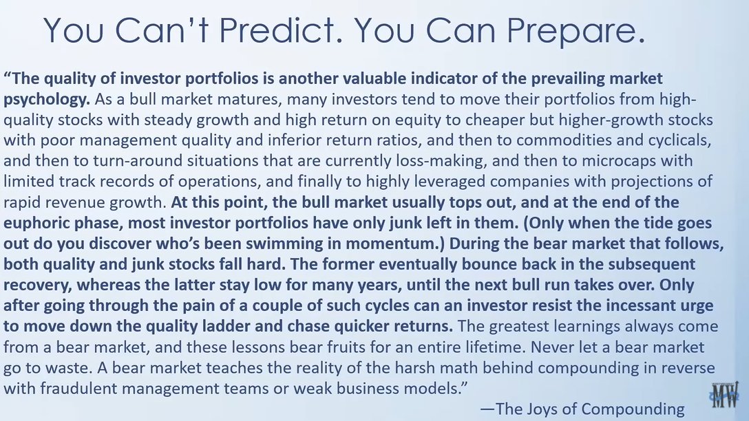 About bull and bear markets. Never let a bear market go to waste (reminded me of the recent March 2020 market crash).