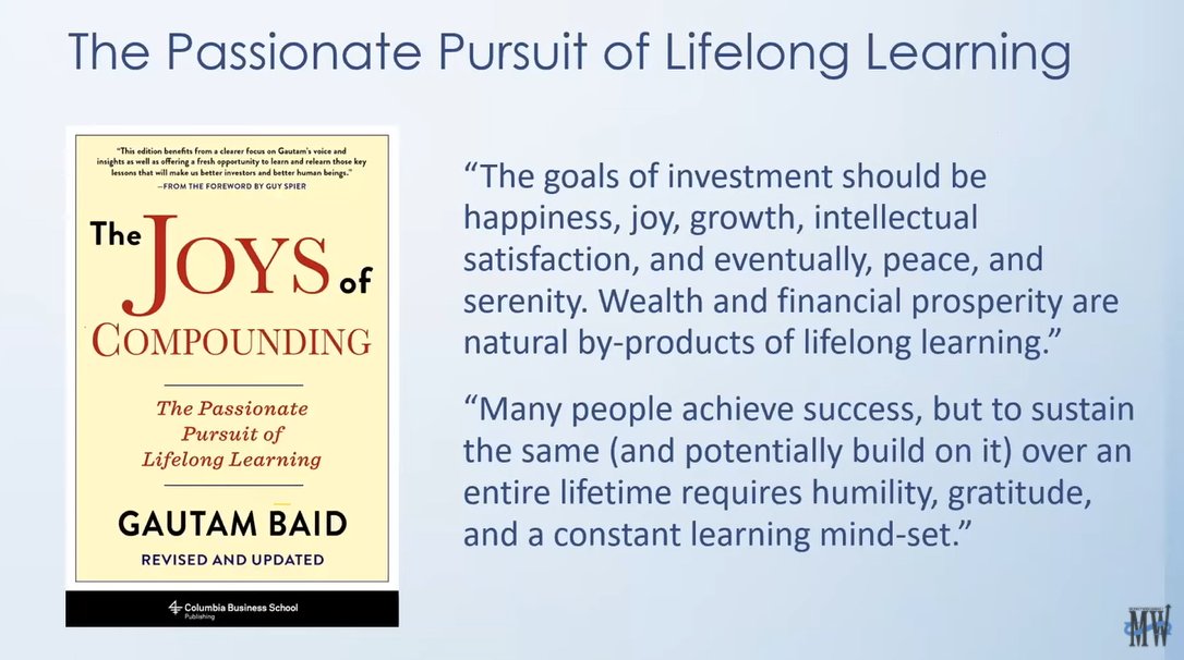 Recently, @MoneywiseSmart conducted an informative session with the Joys of Compounding author @Gautam__Baid, together with @kelvestor and Chong Ser Jing.