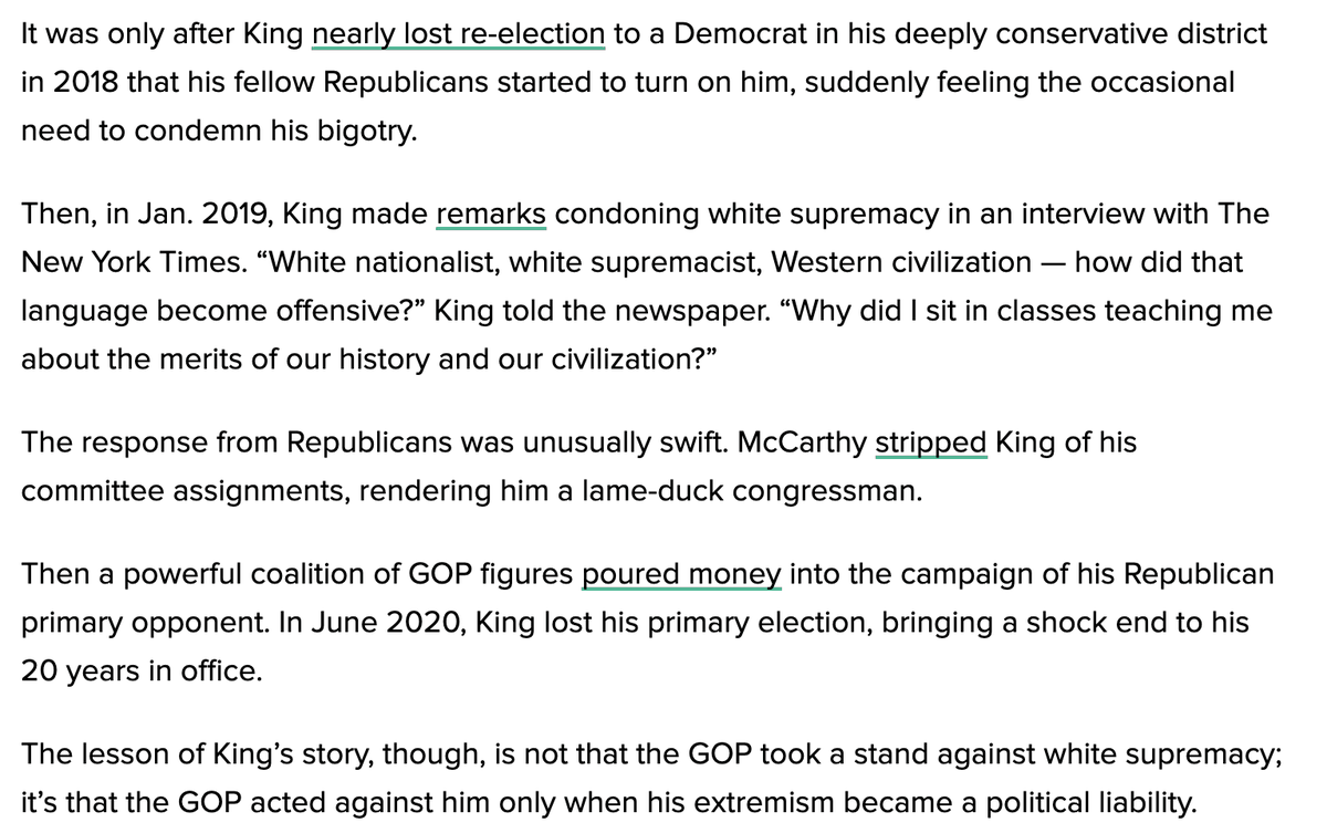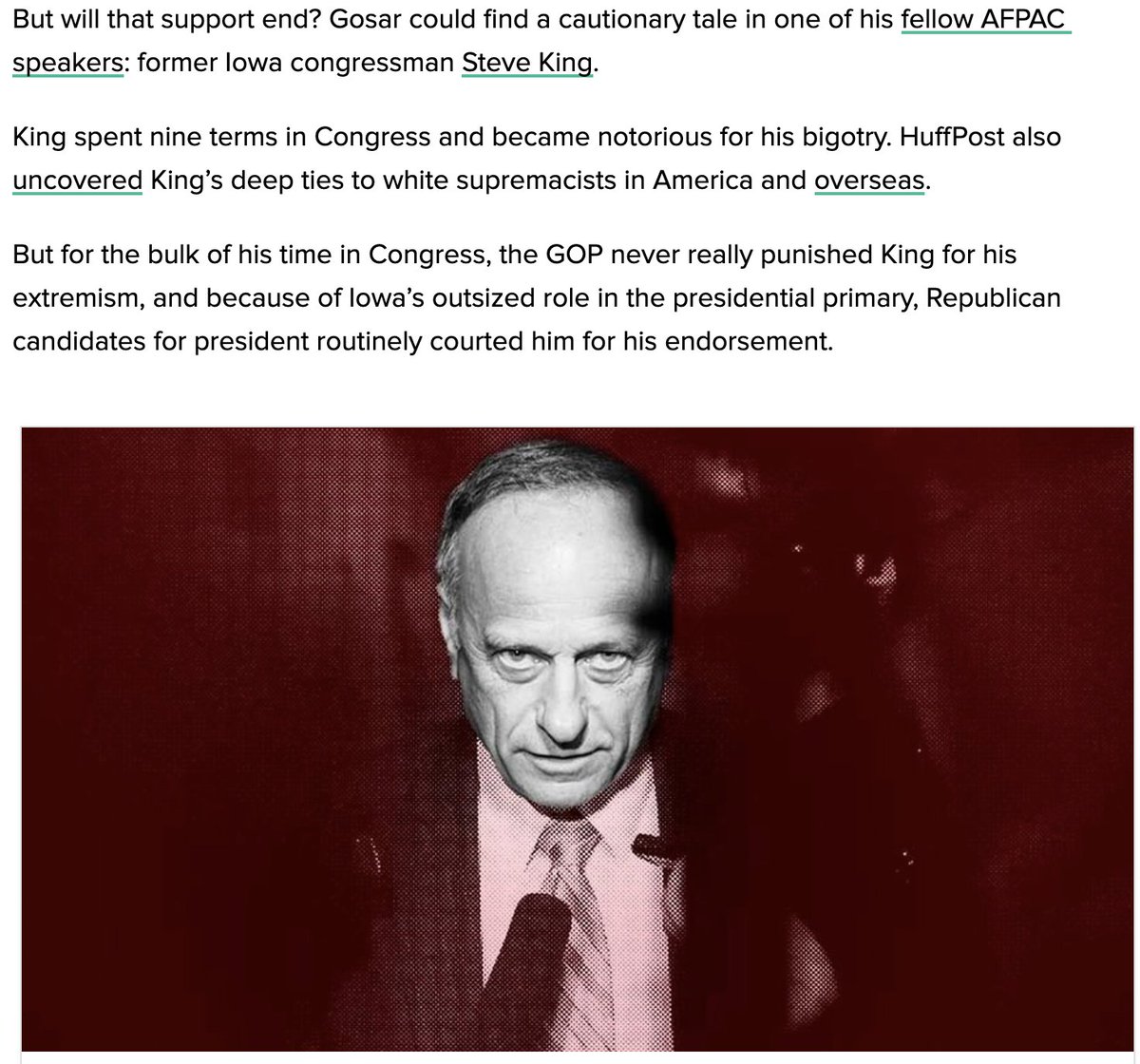 Gosar could find a cautionary tale in one of his fellow speakers at the white nationalist conference: Steve King.