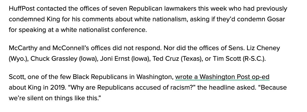 "Why are Republicans accused of racism?” was the headline of a Tim Scott op-ed at the time. “Because we’re silent on things like this.” huffpost.com/entry/paul-gos…
