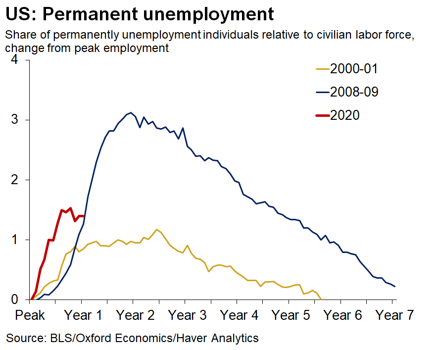 With 4.3 million permanently unemployed individuals, the rise in permanent #unemployment was faster than during the 2 prior recessions. Encouragingly though, the trend has stabilized. Now we need to get on a downward trend!