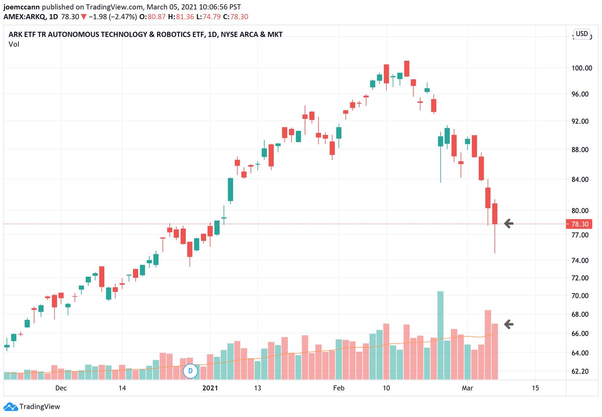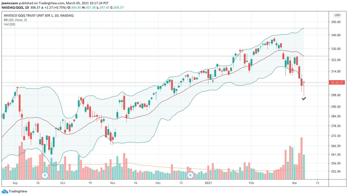 Nasdaq, $QQQ, plunged 3 standard deviations from its 20-day moving average, typically a grossly oversold indicator.