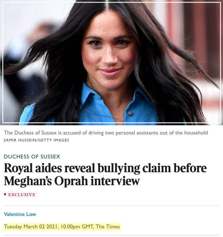 3/2: @thetimes pubs Meghan bullying story w/ H&M response