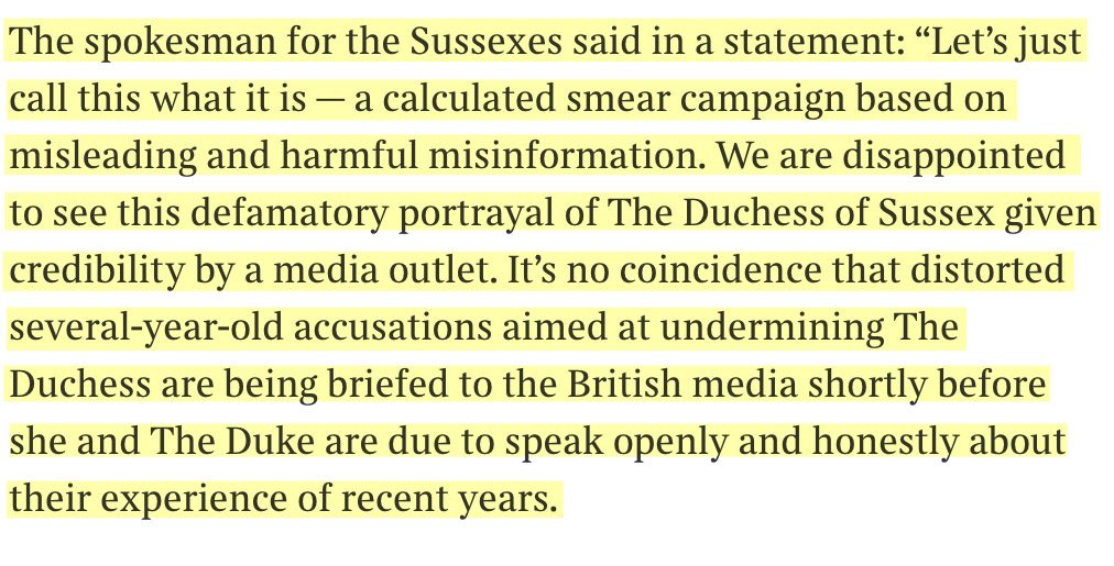 But the issue isn’t negativity. Harry and Meghan have explicitly said they won’t complain about criticism that’s fair, i.e: