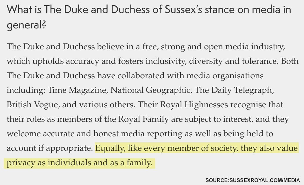 Before Harry + Meghan’s Oprah interview, it’s worth noting how the narrative re: why they left royal life has been twisted by the (UK) media to “They want privacy.”