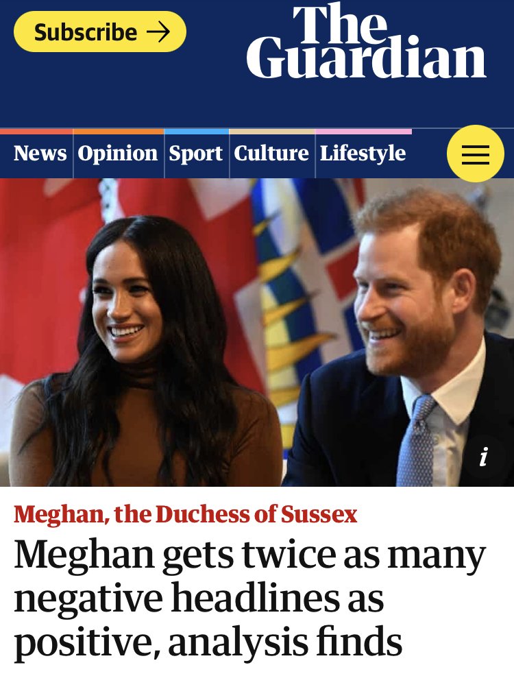 Yes, all the royals get clickbait coverage, sometimes it’s unfavorable, but in the almost 2 years Meghan was a working royal, DATA shows that the overwhelming number of the stories about her were negative.