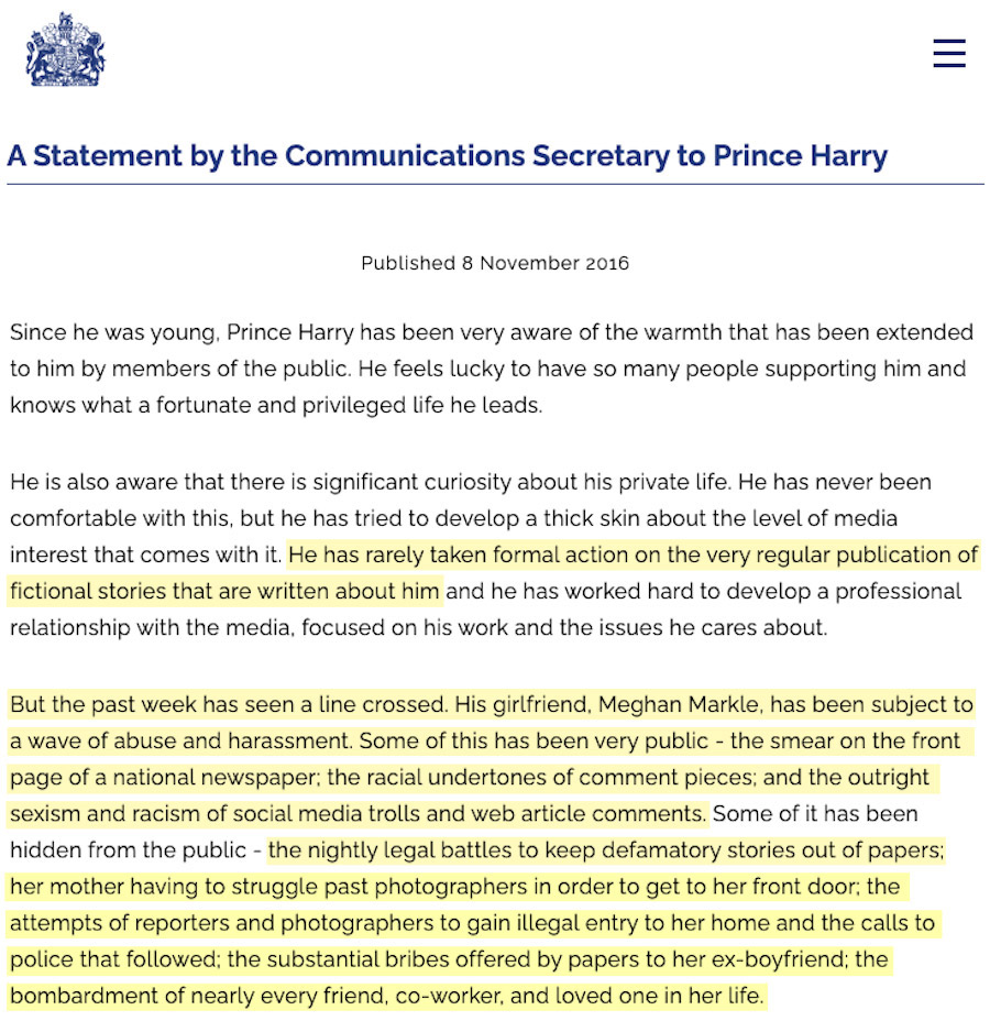 The Sussexes have said for years that THEY BELIEVE there is a "divisive" anti-Meghan agenda in the UK tabloid media and the press knowingly publishes lies and violates the journalistic code of ethics in order to support that narrative: