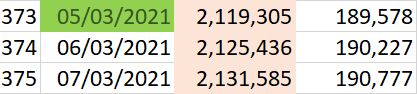 El porcentaje de aumento de casos contra el día anterior fue del 0.35%. Se llegará a 2.2 millones de casos confirmados el día 18 de marzo.
