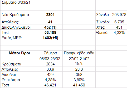 θετικότητα ημέρας: 4,33% (ΜΟ εβδομάδας 4,38%)