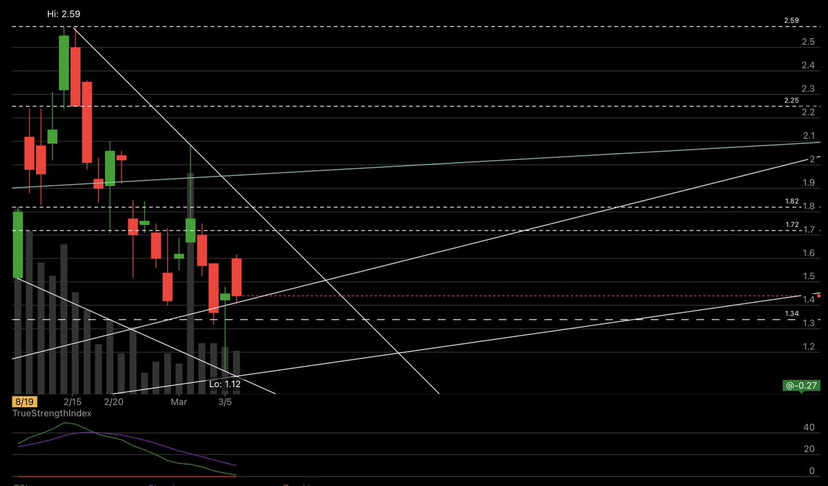 - Closed below parSAR but above MT, 13, 50, 100 and 200 AEMA at 1.61. Controlled price movement with an extended acc. channel (aggressive acc. with increased support). Retested yesterday’s closing price at 1.44. Novan’s presentation has untied the knot. 👀