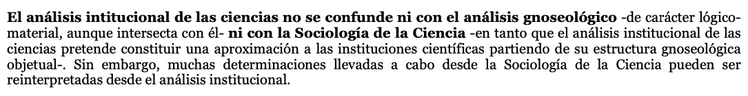 Hay bastante parecido entre Bueno y Latour (el tardío) en su concepción institucional de las ciencias. Ambos coinciden en que hay una continuidad interna entre las instituciones científicas y su entorno y convergen en su propuesta de gnoseologización de la sociología en tanto
