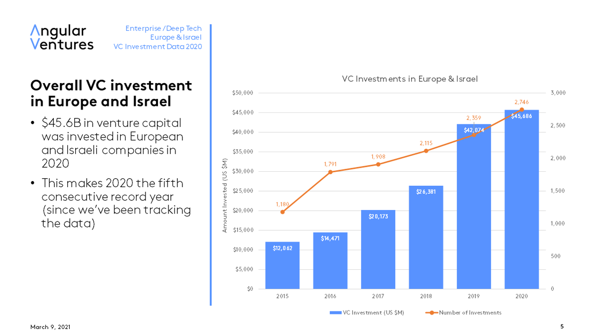 Europe & Israel saw over $45B of VC investment in 2020, a new record.