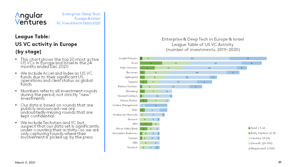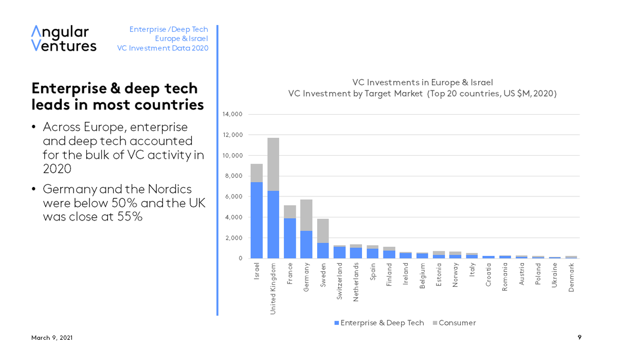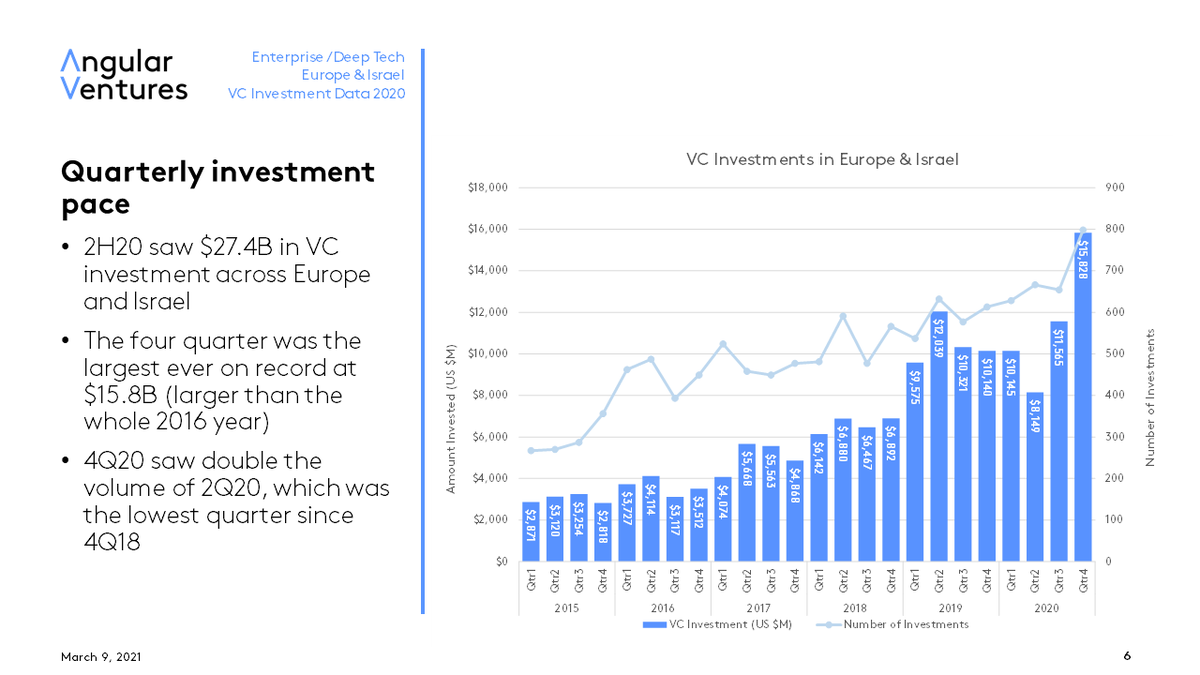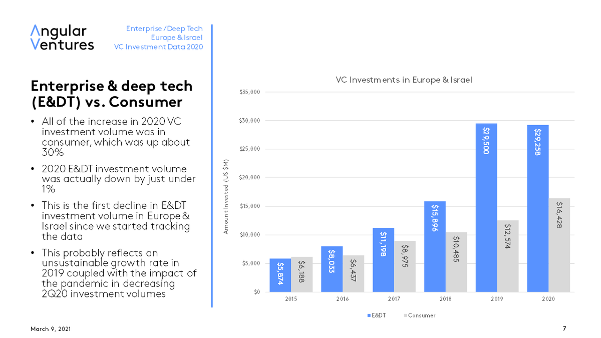 Angular Ventures is super excited to release our 2020 Data Deck on Enterprise & Deep Tech VC Investment in Europe & Israel. 73 pages of proprietary data & analysis. (Thank you @poetential for all the hard work here!)