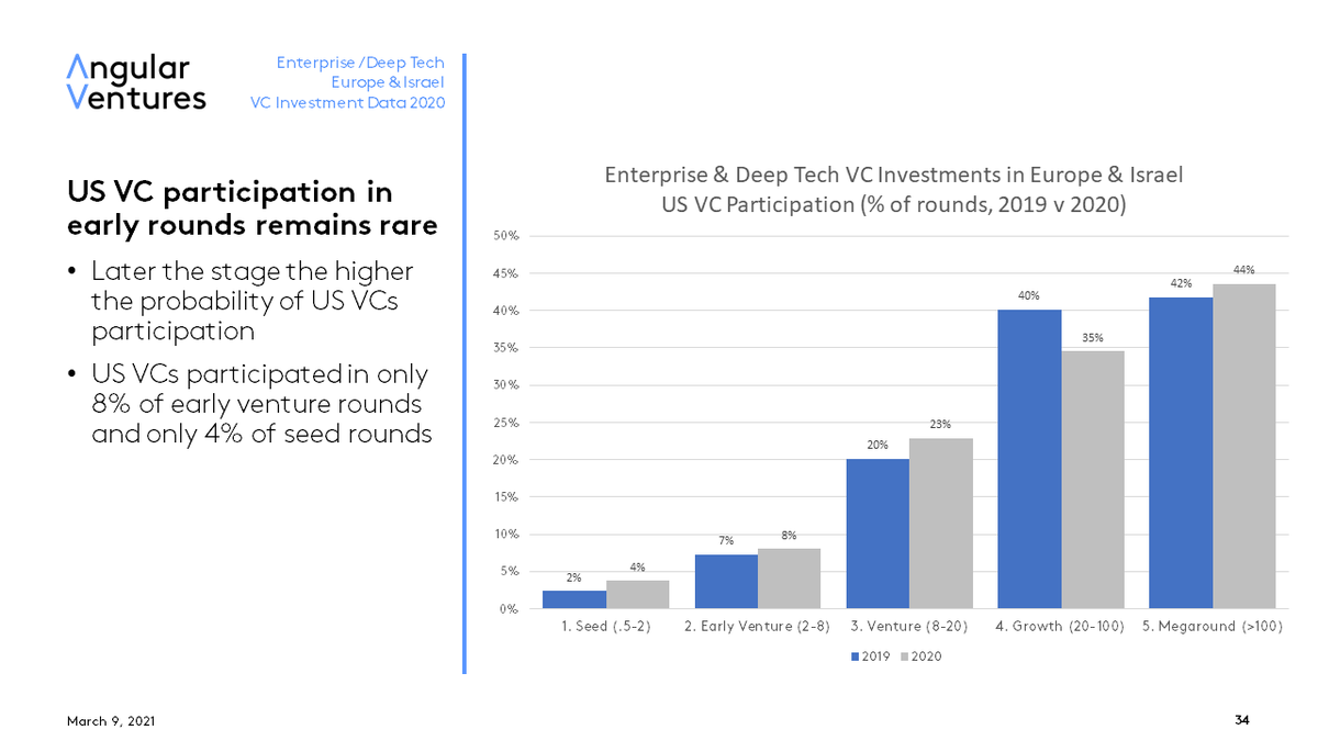 US VC participation in early-stage rounds in Europe/Israel remains very rare. At the later stages, this is far more common.