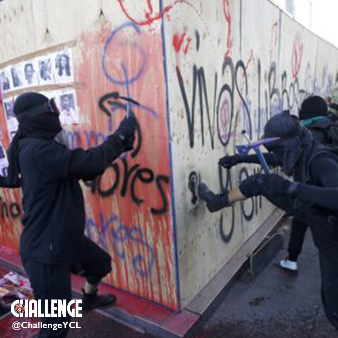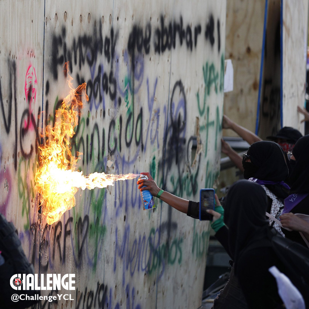Ahead of the protests, Mexico City’s National Palace was barricaded under orders of the president. Despite this, the protesters graffitied, hammered and torched the barricades in response.