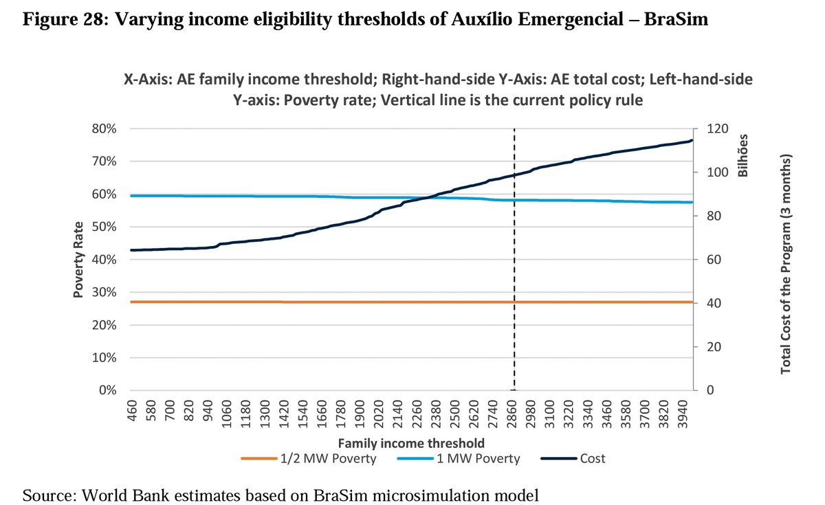 Quero aproveitar o debate sobre o #auxilioemergencial2021(AE) para lembrar um artigo que escrevi no @WorldBank com o time de poverty @fscereda e Liliana Sousa. Nós simulamos o impacto do AE e testamos regras alternativas, segue o fio ...🧵