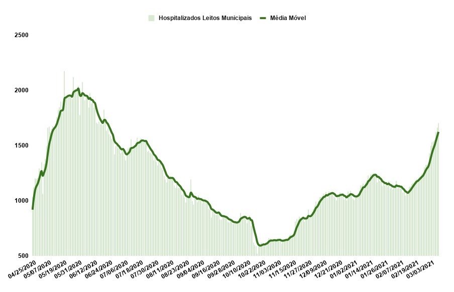 Na ocupação de leitos de hospitais municipais só não estamos na maxima histórica pois na época dos hospitais de campanha internávamos casos mais leves (o que era ótimo pois reduzia a transmissão).