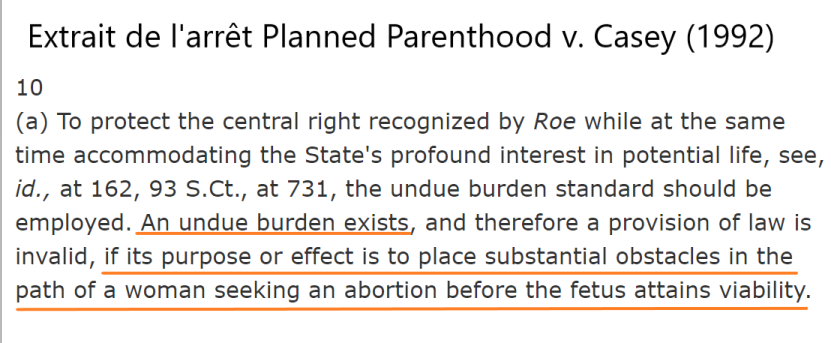En bref : un Etat ne peut pas faire peser un fardeau excessif sur le droit de mettre fin à une grossesse.