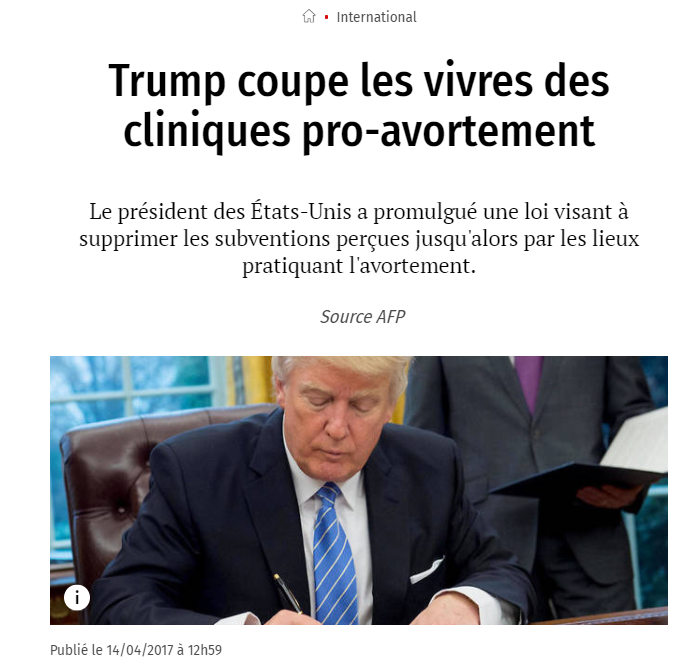 Trump a par ailleurs largement diminué les financements aux plannings familiaux et aux associations qui mentionneraient l'avortement.