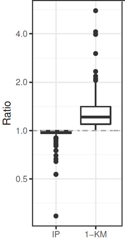 --> (1 - KM) overestimates P(AE) up to factor 5!