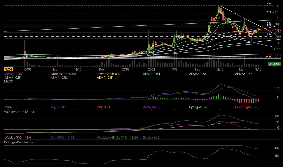 - Closed below parSAR but above MT, 13, 50, 100 and 200 AEMA at 1.61. Controlled price movement with an extended acc. channel (aggressive acc. with increased support). Retested yesterday’s closing price at 1.44. Novan’s presentation has untied the knot. 👀