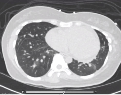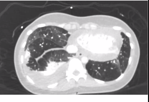She goes to the ED and gets another CT... mosaicism is still there but now she has a new bilateral pleural effusions and interlobular septal thickening and atelectasis.