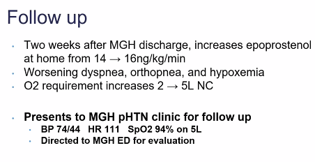 She's started on IV epo, sildenafil, ambrisentan. O2 requirement improves to 1-2L and is discharged on this triple therapy....but later returns.