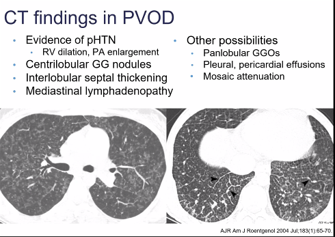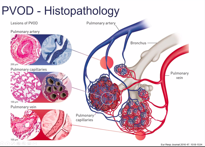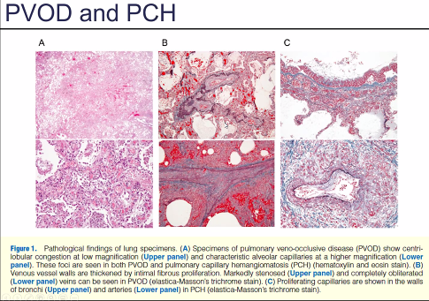 Pathologically, PVOD may be on a spectrum with pulmonary capillary hemangiomatosis