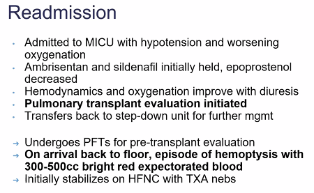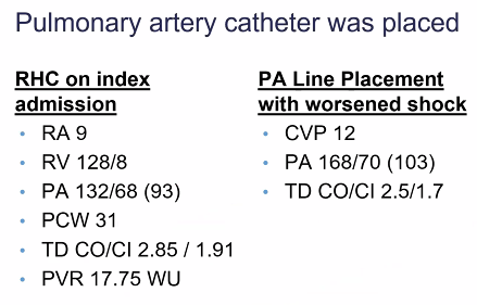 Pulmonary vasodilators? This patient had the classis pulmonary edema response to vasodilators. Can they ever be tried? Dr. Zetlen says, yes - sometimes can be considered and helps for some patients, but pulmonary edema is extremely likely. Not all patients are the same!