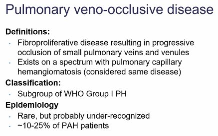 PVOD prognosis is poor... Median survival was 3.5 years from diagnosis, compared to > 25 years in other pulmonary hypertension.