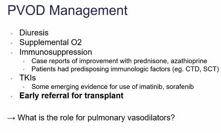 What can we do? Diurese, provide oxygen... and some evidence for immunosuppression and TKIs for some patients, refer for transplant.