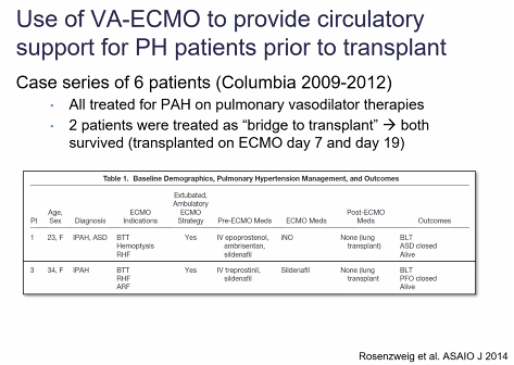 Wait... VA ECMO in PH? Yes, says Dr. Peck - with improved ECMO technology, pre-transplant has begun to improve mortality in the right patients.