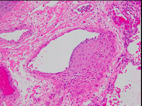 This of course means we now have pathology...Dr. Zetlen (with appreciation to our pathologist extraordinaire Dr. Lida Hariri) shows smooth muscle hypertrophy of pulmonary veins/venules, some completely occluded.