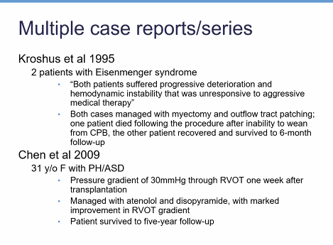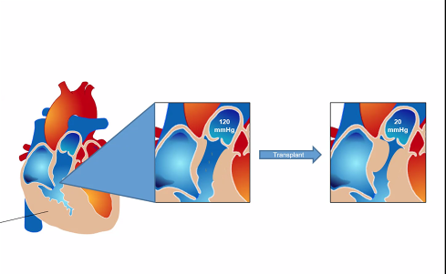 But in this patient, given her R heart disease, ended up with post transplant RVOT obstruction from relative reduction in PA pressures!