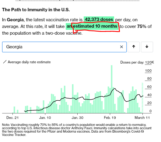 If there's a significant pull-back after the storm make-up bump, this could slip back down. But between J&J doses going into arms this week + rising shipments of about 15M doses/week, that seems unlikely/short-lived.