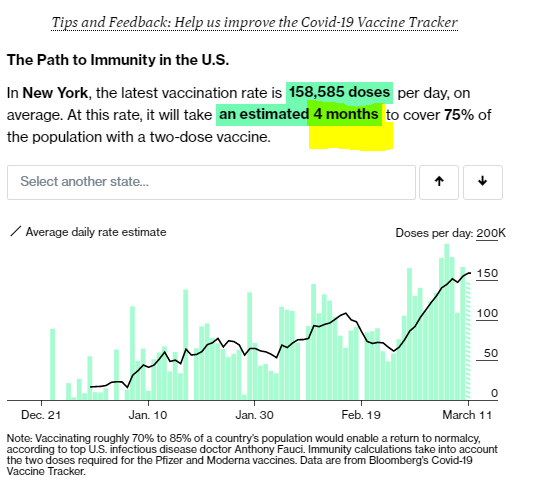 ⚠️Data note: We made a chance to our NYC methodology that brings it in line with the rest of the U.S. The % of people vaccinated now reflects residents, not place of vaccination. The resulted in a change to our NYC %s.