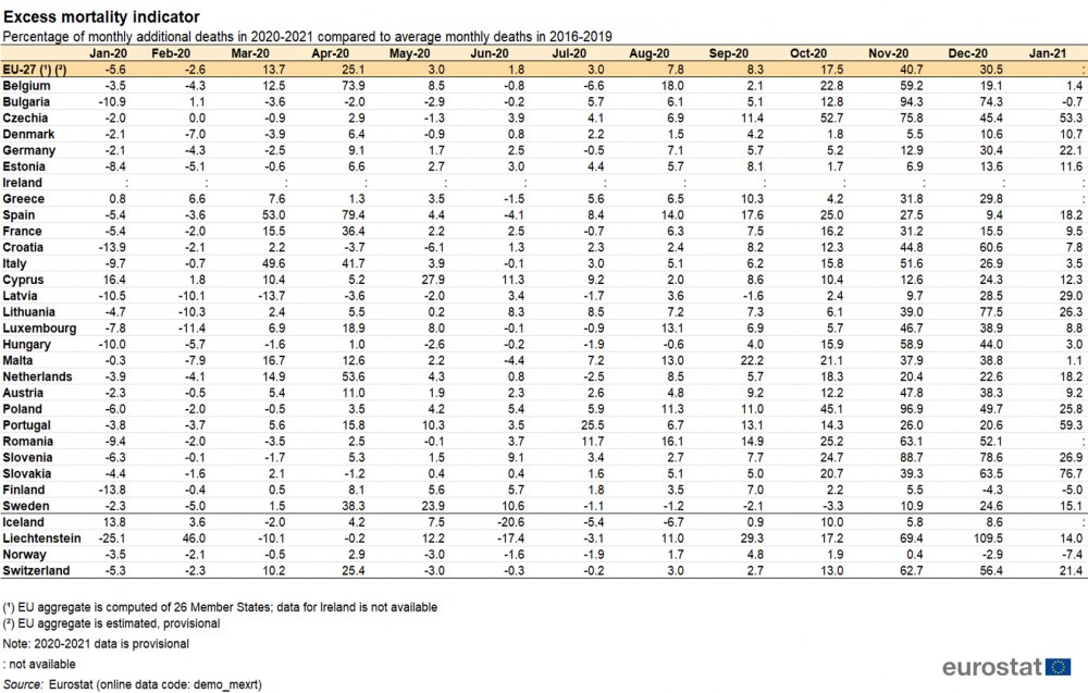 In August and September, excess mortality in the EU was 8% higher than the average, 18% higher in October, and 41% higher in November, followed by 30% higher in December.