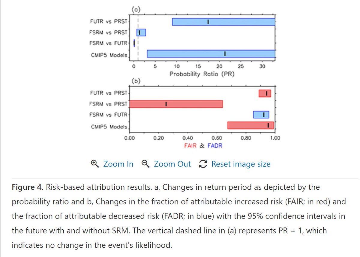 5/7 Dagon's paper concludes "Using an ensemble approach, we show that in almost every region, heat waves and consecutive dry days decrease in frequency in a world with solar geoengineering relative to a doubled CO2 climate."